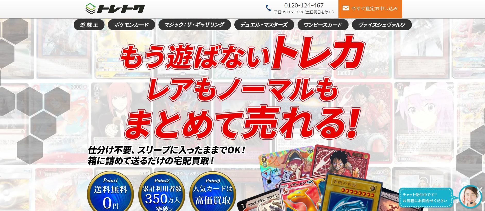 公式サイトはこちら 遊戯王ノーマル買取 不要なトレカをお得に売るならトレトク 面倒な仕分けや店舗への持ち込みは一切不要です。スリーブに入れたまま箱に詰めて送るだけで、無料で買取します。トレカ専門のベテラン査定士が1枚ずつ丁寧に査定します。 簡単・安心・お得な買取 送料や手数料は完全無料。査定額に納得いただければ、1枚ごとの明細もお出しします。高価買取リストを事前にチェックし、お得な取引をしませんか。引っ越しや大掃除の際に、ぜひご利用ください。 商品名 遊戯王ノーマル買取 カテゴリ 趣味