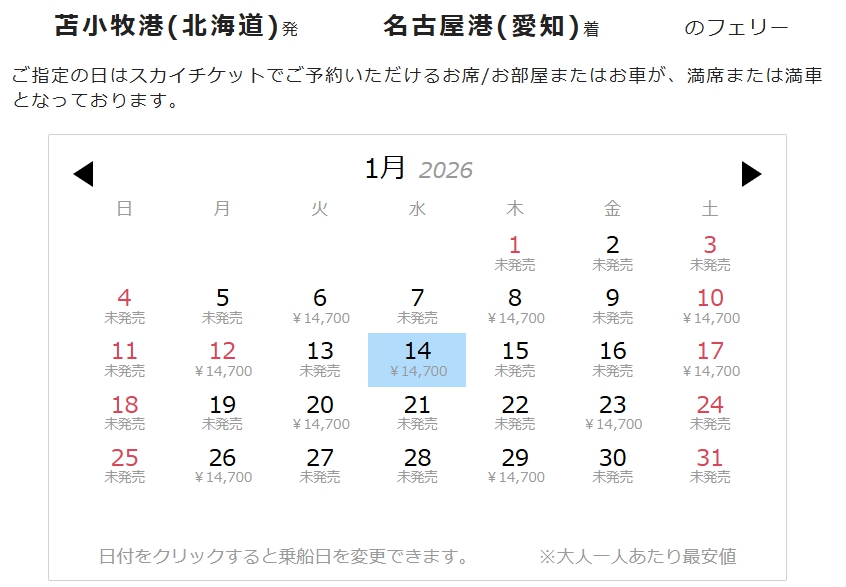 | 商品名 | 苫小牧 から 名古屋 フェリー |
