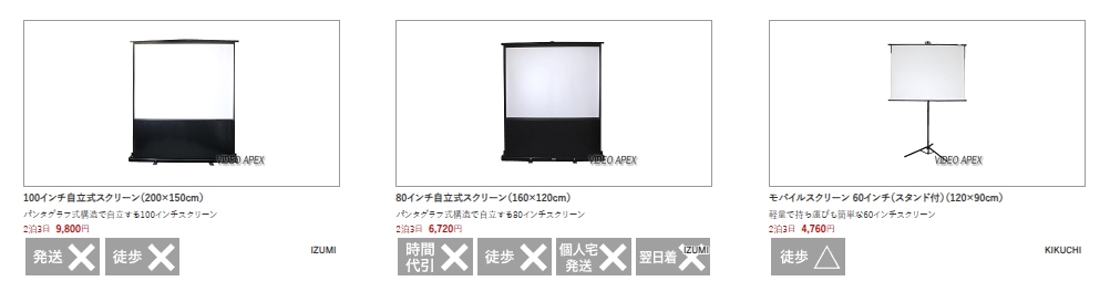公式サイトはこちら プロジェクタースクリーンレンタル 「必要なものを買うのではなく、借りる時代」へ。30年以上の実績を持つ老舗のレンタルサービスです。ウェブカメラやプロジェクターなど、ビジネスからイベントまで幅広いシーンで使える商品を豊富にご用意しています。 2泊からレンタル可能で、全国どこでもご利用いただけます。普段使わないけど必要な時に、お得な価格で高品質な機材をレンタルしませんか。目的や用途に合わせて、あなたにぴったりの商品がきっと見つかります 商品名 プロジェクタースクリーンレンタル カテゴリ ビジネス,生活