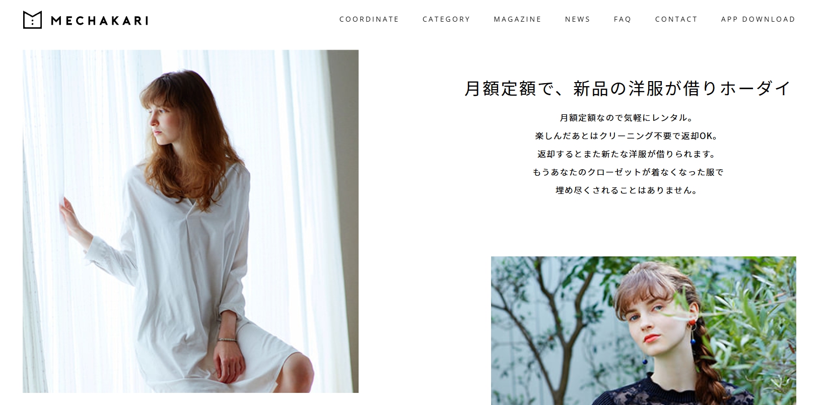 公式サイトはこちら 洋服のサブスク 20~30代女性に人気のファッションレンタル「メチャカリ」。月額3,476円(税込)から、最新トレンド服や定番アイテムが借り放題です。届くアイテムはすべて新品なので、汚れや臭いの心配はいりません。 返却時クリーニング不要、コンビニからスマホで簡単返却OK。秋冬にはコートやアウターも1枠分でレンタル可能です。60日借り続けるとあなたのものに。クローゼットを増やさず、お得にファッションを楽しめます。 商品名 洋服のサブスク カテゴリ ファッション