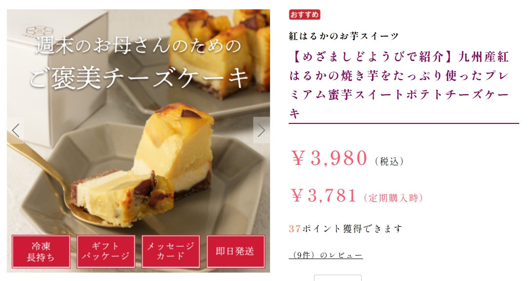 公式サイトはこちら スイートポテトチーズケーキ 九州産紅はるかを1,000時間以上熟成し、低温でじっくり焼き上げて自然な甘さを最大限に引き出しました。他にはない上品な甘さとしっとり食感をぜひご堪能ください。 無着色・保存料不使用で、小さなお子様から妊産婦の方まで安心してお召し上がりいただけます。健康志向の方にも人気です。産地別の食べ比べも楽しめ、ギフト需要にも最適。今ならお得な食べ比べセットもご用意しています。 商品名 スイートポテトチーズケーキ カテゴリ 生活,食品