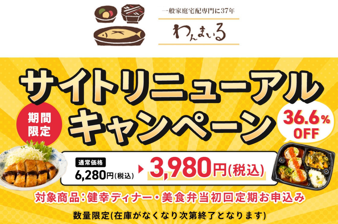 公式サイトはこちら 美食弁当 累計360万食を突破した「健幸ディナー」は国産食材100%、合成添加物不使用。たんぱく質20g以上、糖質30g以下の基準で、日経DUALランキング味・品質部門1位の味を湯せんで楽しめます。 さらに食品添加物無添加にこだわった「美食弁当」は、専属管理栄養士がブランド食材(石見ポークなど)を使用。栄養バランスを考えたメニューをレンジで簡単に! メニュー考案不要で健康と時短をお得に手に入れられます。 商品名 美食弁当 カテゴリ 食品