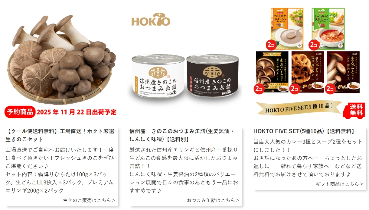 公式サイトはこちら 菌活 ビタミンB群、食物繊維、GABA、オルニチンなど、栄養豊富なきのこを国内自社工場で生産! ホクトが作った健康食品やレトルト食品が通販限定で手に入ります。免疫、美容、健康長寿を目指す、すべての方の健康をサポートします。 「もう一品」や料理が面倒な方には、きのこカレー・スープが手軽でおすすめ! 特に乾燥シイタケはコスパに自信があり、お料理にちょい足しするのにも便利です。お得なセット購入で、きのこの栄養と健康長寿を手に入れましょう。 商品名 菌活 カテゴリ 食品
