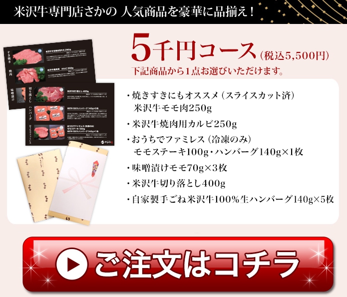 公式サイトはこちら 米沢牛 カタログギフト 190アイテム以上の米沢牛を取り揃える専門店! 長年の実績から、贈答品として間違いのない品質をお届けします。グルメな方や食へのこだわりが強い方々が、自信を持って選べる逸品ばかりです。 カタログギフトは、二次会の景品や社内の福利厚生にも大好評! 大切な方への贈り物として、失敗しない選択をお得な価格で提供します。運営に合わせた様々なギフト提案が可能。貢献度の高い方には特別成果制度もご用意しています。 商品名 米沢牛 カタログギフト カテゴリ 食品