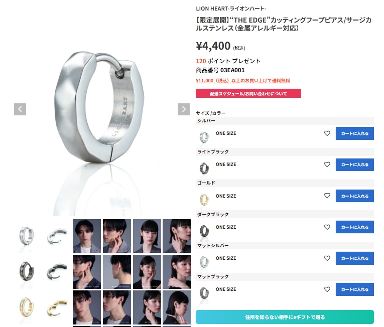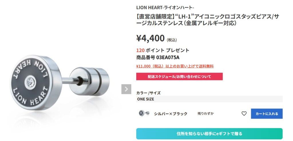 1996年創業、メンズアクセの王道「LION HEART」。 基本的に「片耳(1個売り)」なので、予算やスタイルに合わせて自由に選べるのが魅力です。