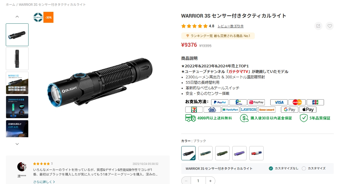 プロが選ぶタクティカルライトの決定版です。最大2300ルーメンの圧倒的な光量に加え、ポケット内での誤点灯を防ぐ近接センサーを搭載し、安全性が飛躍的に向上しました。サバゲーや警備業務から防災への備えまで、過酷な環境でも確実に動作する耐久性を備えており、旧型からの買い替え需要も高いモデルです。