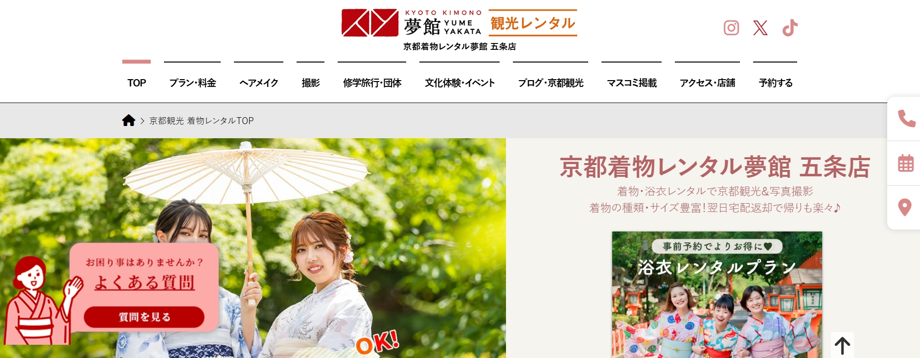 京都で50万人以上のお客様にご利用いただいた着物レンタル夢館は、創業55年の老舗呉服店が運営しています。3万着以上の着物や浴衣を揃え、そのほとんどが3,030円という均一価格。KIMONOMACHIオリジナルデザインも楽しめるのが夢館だけです。他店のように「結局高いプランになる」という心配はありません。
