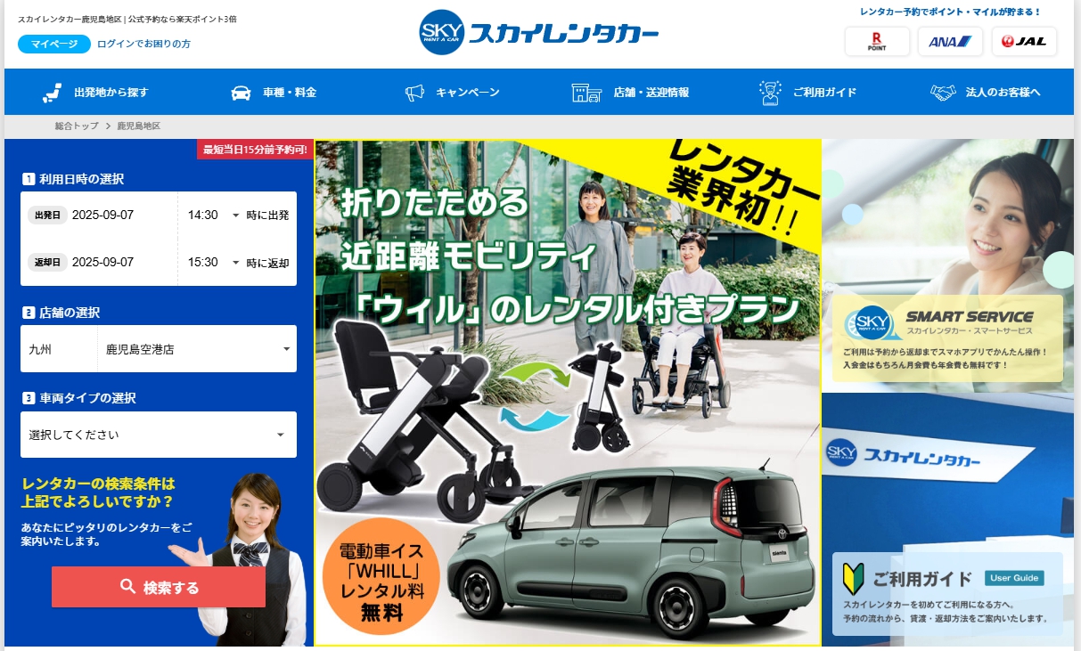 公式サイトはこちら 鹿児島 レンタカー 沖縄、九州、北海道での格安レンタカー予約なら「スカイレンタカー」。観光や出張に便利なキャンペーンを随時ご用意しています。早割やアウトレット限定プランなど、お得なプランが盛りだくさんなので、旅の計画を立てるのが楽しくなります。 沖縄、九州、北海道に特化しているため、豊富な車種から最適なレンタカーが見つかります。出張や旅行での移動がぐっと快適に。いつでもお得な価格でレンタカーを借りて、快適でお得な旅を楽しみませんか。 商品名 鹿児島 レンタカー カテゴリ 旅行