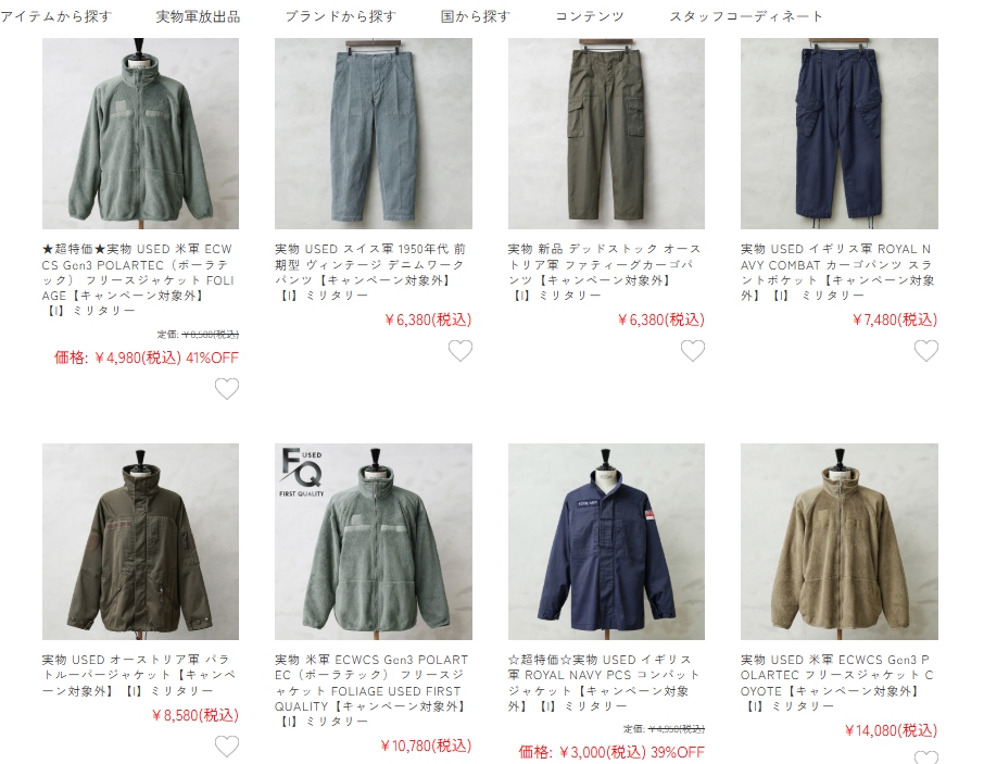 ミリタリーショップWIPは、他店にはない独自の視点で選び抜かれた、本格的な軍物アイテムを展開しています。希少な実物アイテムも豊富に取り揃え、アメカジやアウトドアブランドも充実。20代から60代まで幅広い層に支持されています。複数点購入でお得になる割引キャンペーンもご用意しています。