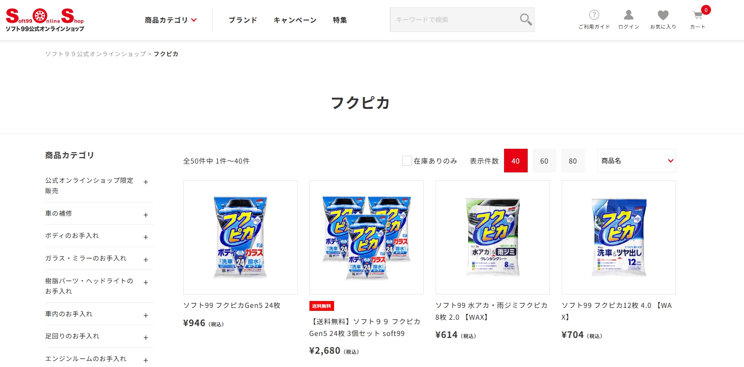 「ガラコ」や「フクピカ」でおなじみのソフト99公式オンラインショップです。洗車から補修まで、メーカーならではの豊富な品揃えと詳細な情報でカーライフをサポートします。通常手に入らない公式ショップ限定商品も多数ご用意しており、お得にお買い物いただけます。