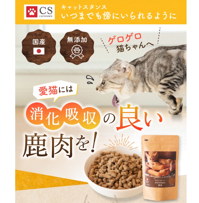 公式サイトはこちら 猫の吐き戻し対策 純国産・無添加のキャットフード「キャットスタンス」は、完全肉食動物の猫のために、国産の野生鹿肉を使用しています。ドライフードからウェットフード、無添加おやつまで、愛猫の食いつきが良くなる工夫が満載。 今なら、ドライフードやウェットフードなどが入った「フルセットお試し」が、通常2,750円のところ28%オフの1,980円でご購入いただけます。消化吸収を考えたこだわりの低温調理で、愛猫の健康を美味しくサポートしませんか。 商品名 猫の吐き戻し対策 カテゴリ ペット